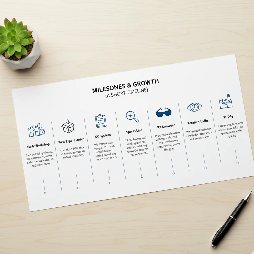 I still keep a bent temple on my desk from our first year. It reminds me that craft is patient. We learned to slow down at the right moments—fit, balance, and finish—and speed up where it doesn’t harm quality—paperwork and logistics. If you visit, I’ll show you that temple and the torque wrench that retired it.